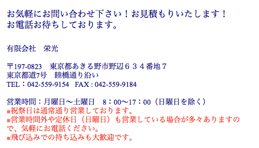 なお、連絡を事前にいただくことができれば休業期間中もご対応が可能です。